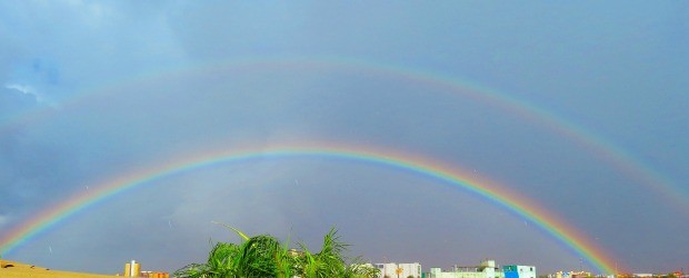 O arco-íris duplo se forma quando "os raios de luz oriundos do Sol,
